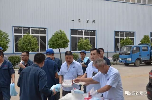 7月26日下午,襄陽(yáng)國(guó)鐵機(jī)電股份有限公司黨支部的主要領(lǐng)導(dǎo)來(lái)到生產(chǎn)現(xiàn)場(chǎng)為國(guó)鐵50余名一線員工送上了夏日的清涼。