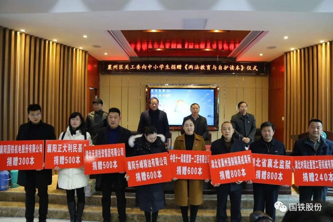 12月19日,襄州區(qū)關(guān)工委向中小學(xué)生捐贈(zèng)《兩法教育與自護(hù)讀本》儀式在張灣中心學(xué)校舉行。在區(qū)關(guān)工委的倡議下,襄陽國鐵積極響應(yīng),向中小學(xué)生捐贈(zèng)圖書300本。
